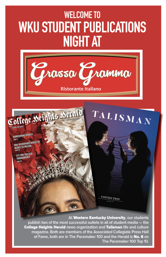 Our second WKU Student Publications Night at Grassa Gramma Ristorante Italiano in Louisville brought in nearly $1,400 for the Student…